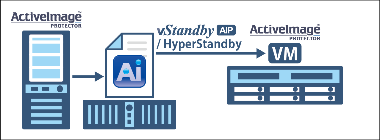 Beim Aufbau einer redundanten Systemumgebung mit HyperStandby / vStandby AIP unter Verwendung von Backup-Dateien, die mit einer installierten Kopie von ActiveImage Protector erstellt wurden, ist eine weitere lizenzierte Kopie von ActiveImage Protector Virtual auf der Standby-Maschine erforderlich.